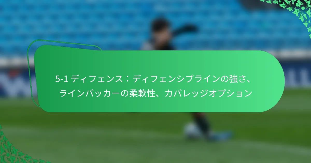 5-1ディフェンスは、さまざまな攻撃戦略に適応できるカバレッジオプションを提供します。主要なカバレッジスキームには、ゾーンカバレッジとマンカバレッジがあり、それぞれに強みと弱みがあります。これらのオプションを理解することは、ゲーム状況で5-1ディフェンスを効果的に実施するために重要です。
