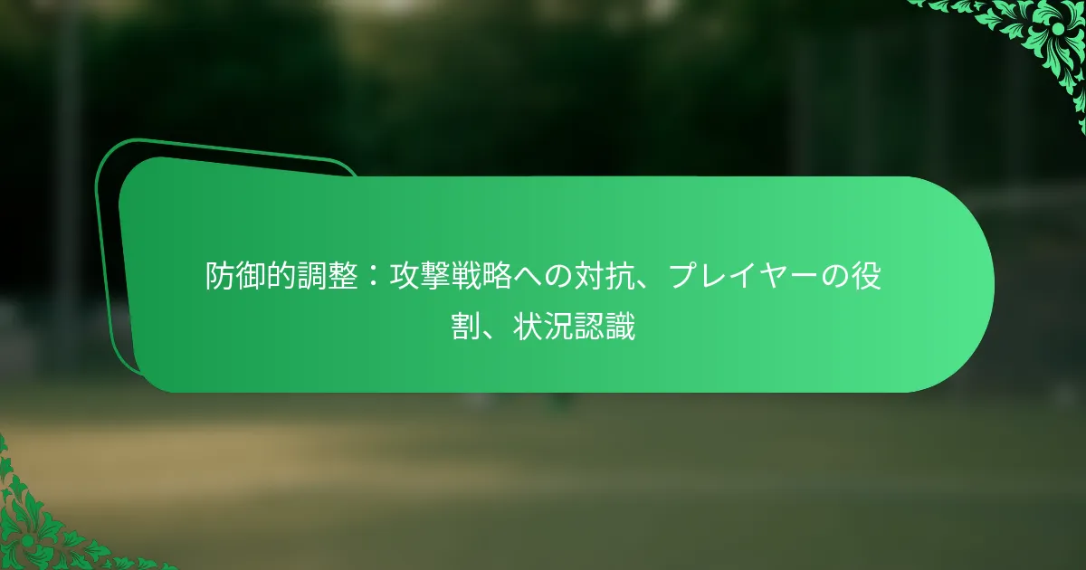 スポーツにおける守備の調整は、チームが相手の攻撃戦略に対抗するために実施する重要な戦術的変更です。これらの戦術を認識し、対応することで、チームは競争優位を維持し、試合の結果に影響を与えることができます。効果的なコミュニケーション、選手の役割、状況認識は、これらの調整を成功裏に実行するための重要な要素です。