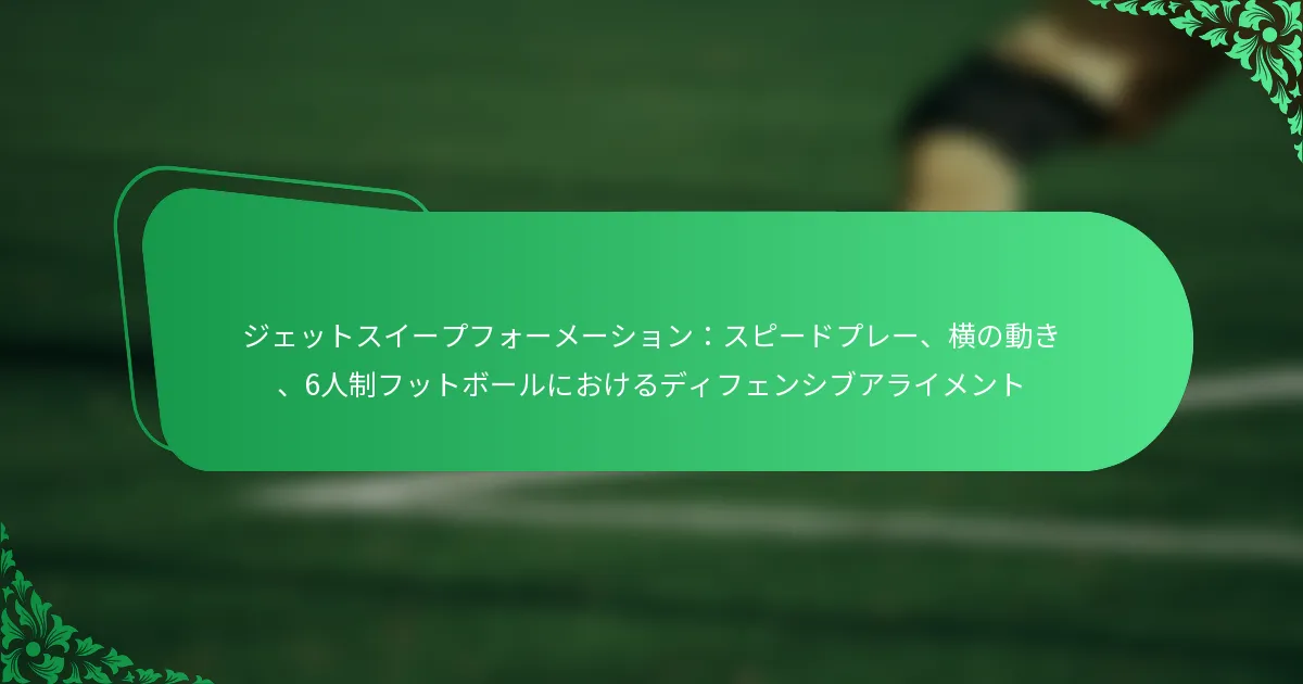 6人制フットボールにおけるジェットスイープフォーメーションは、スピードと横の動きを強調したダイナミックな攻撃戦略です。動いている選手にハンドオフを行うことで、チームはディフェンスを引き伸ばし、大きなゲインを得るための隙間を作り出すことができます。このフォーメーションは、迅速な横の動きを活用するだけでなく、ディフェンスの配置を効果的に利用して攻撃の可能性を最大化します。