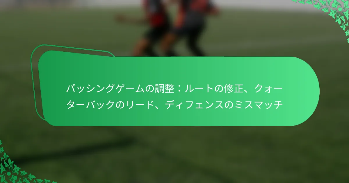 パッシングゲームの調整には、ルート、クォーターバックの意思決定、ディフェンスのミスマッチの特定に関する戦略的な変更が含まれます。これらの要素は、攻撃の効果を高め、ディフェンスの弱点を利用するために連携して機能します。