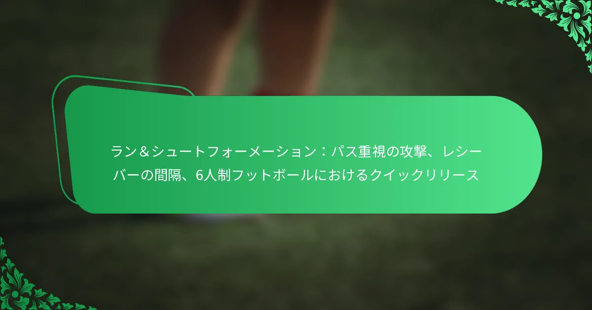 6人制フットボールにおけるラン・アンド・シュートフォーメーションは、パス中心の攻撃を優先するダイナミックなオフェンシブ戦略であり、迅速なリリースと最適なレシーバーの間隔に焦点を当てています。戦略的なパスと効果的な動きを強調することで、このフォーメーションはチームが守備の弱点を突き、さまざまなカバレッジに適応することを可能にし、ゲームで好まれる選択肢となっています。