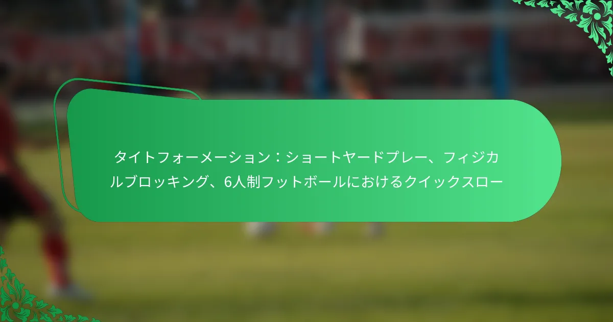 6人制フットボールにおけるタイトフォーメーションは、ブロッキング効率の向上や迅速なオフェンシブ実行などのいくつかの利点を提供しますが、予測可能性や限られたフィールドスペースなどの課題もあります。これらの要因を理解することは、短いヤードプレーを最適化しようとするチームにとって重要です。