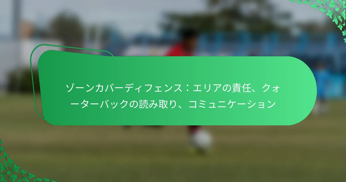 ゾーンカバーディフェンスは、ディフェンダーが個々の選手ではなく、フィールドの特定のエリアに割り当てられる戦略です。このアプローチにより、パスレーンのカバーが向上し、相手のクォーターバックに混乱をもたらすことができます。