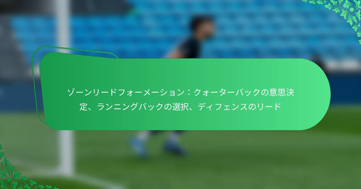 ゾーンリードフォーメーションにおけるクォーターバックの選択には、いくつかの重要な要因が影響します。これには、ディフェンスの配置、クォーターバック自身のスキルセット、ゲーム状況が含まれます。